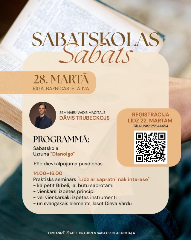 Aicināts piedalīties ikviens! Seminārā gūsiet vērtīgas atziņas un praktiskas iemaņas savām personīgajām Bībeles studijām.